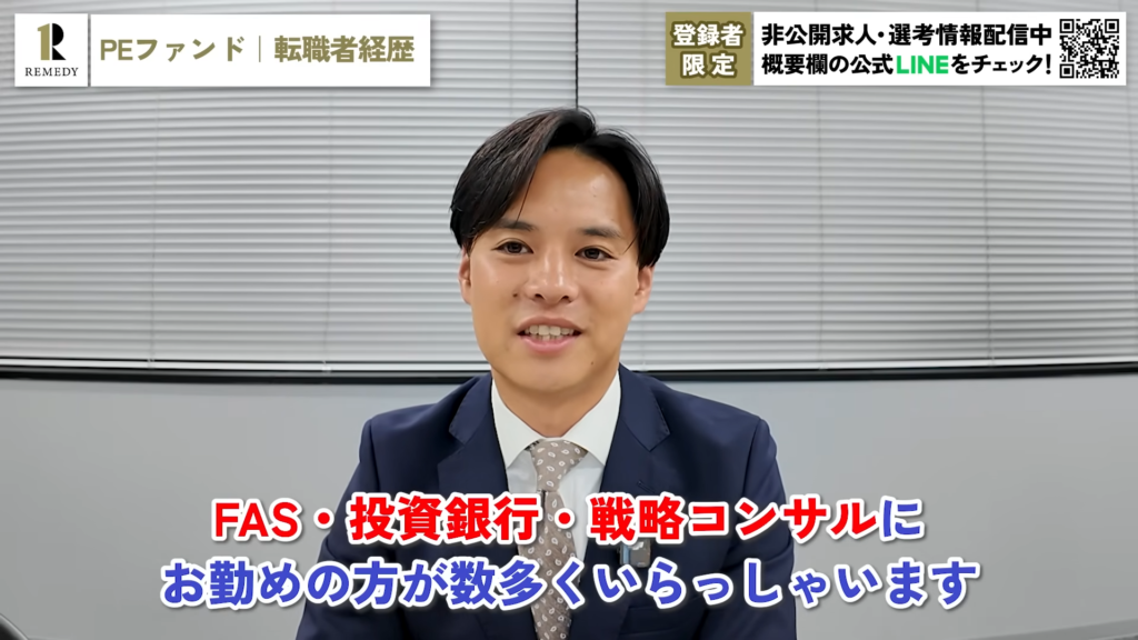 弊社のYouTubeチャンネルでは、PEファンドにおける面接官の本音/選考詳細/選考対策/内定獲得までの道を網羅的に解説動画を投稿しております。PEファンドへの転職をお考えの方はぜひご覧ください。